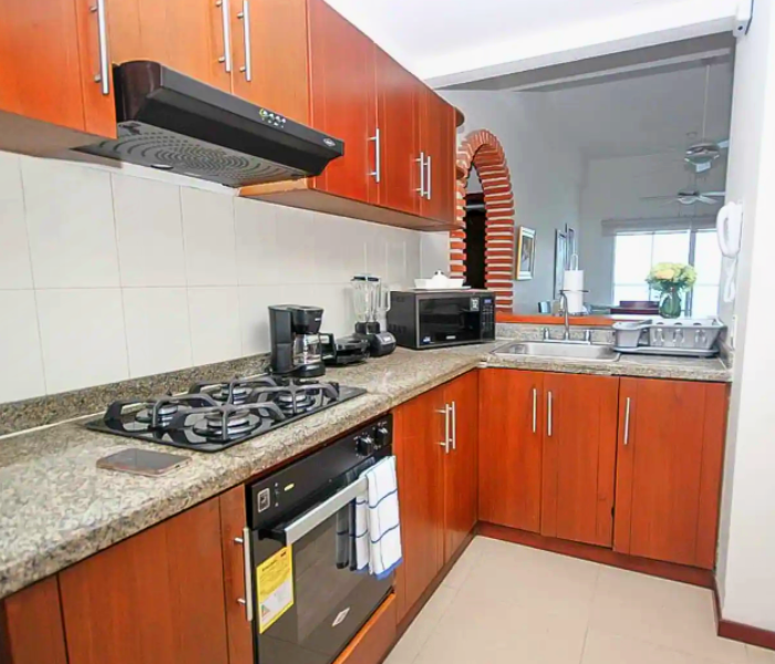 Apartamento vacacional en el sector del Laguito en Cartagena, diseñado para familias en busca de vivir unas vacaciones inolvidables, cuenta con capacidad hasta para 6 personas, cuenta con dos habitaciones, sala, comedor, cocina totalmente equipada, bancón con una vista espectacular al mar y acceso a la piscina del edificio.