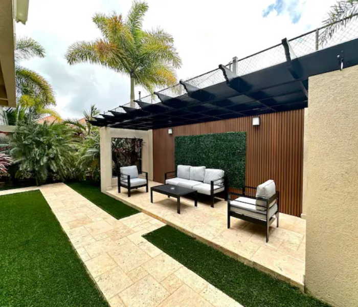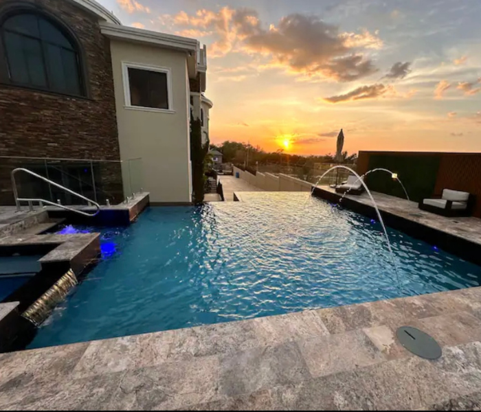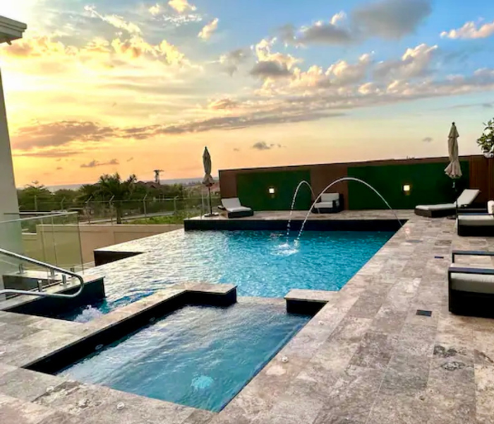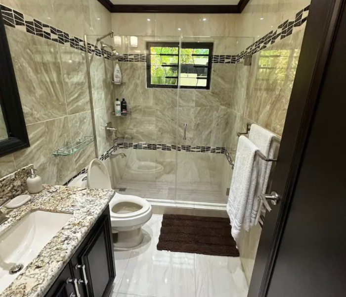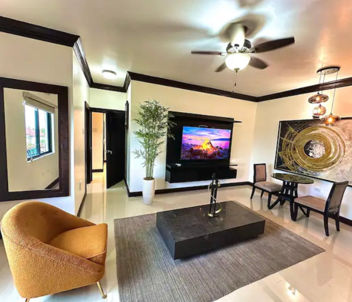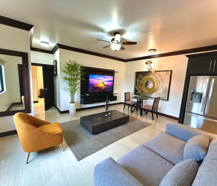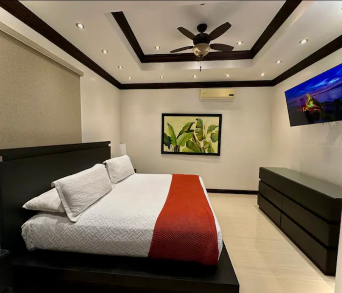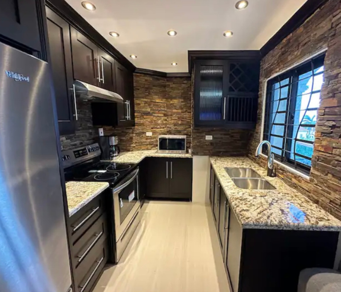 Ubicado en la hermosa ciudad de Ironshore, Montego Bay. Nuestro complejo está a un minuto a pie de Whitter Village, allí puedes encontrar todo lo que necesitas para comer, comprar, negocios y entretenimiento. Estamos a pocos minutos del aeropuerto y de varias playas hermosas. Ofrecemos estacionamiento adecuado, un gimnasio totalmente equipado, videovigilancia externa de 360° y seguridad las 24 horas en la propiedad. Nuestra unidad de 2 dormitorios está totalmente climatizada, equipada con WIFI y televisión por cable/inteligente.