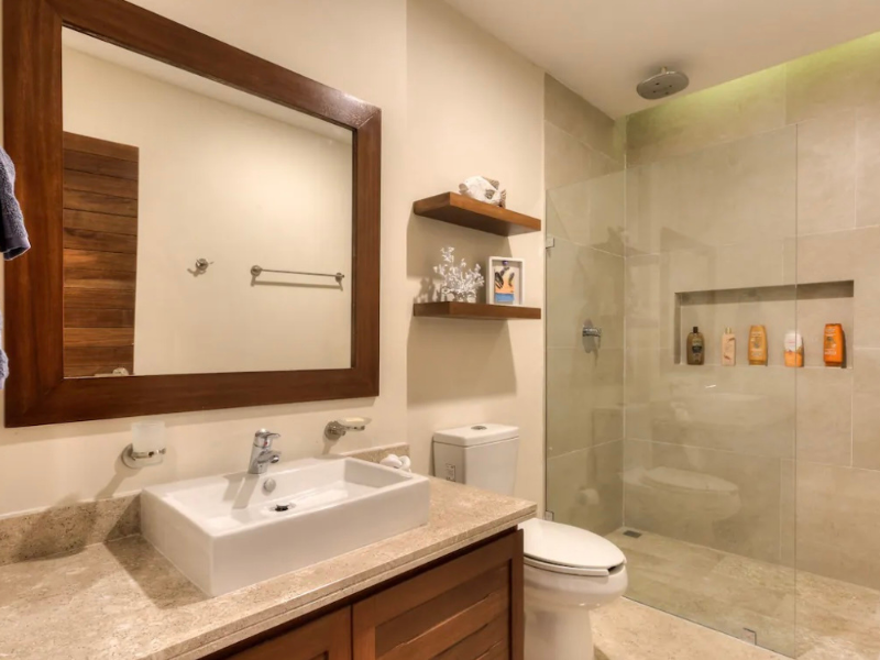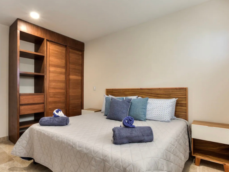 Este espacioso y cómodo alojamiento ofrece una experiencia única. Con una acogedora sala de estar, comedor y cocina totalmente equipada, te sentirás como en casa. Además, cuenta con tres dormitorios bien equipados, incluido el dormitorio principal con una cama tamaño king y baño privado, otra habitación con una cama tamaño king y la tercera con dos camas dobles, lo que garantiza la comodidad de todos los huéspedes. También hay un baño completo adicional para mayor comodidad. En la planta baja encontrarás una piscina con una vista espectacular. Esta piscina forma parte de un exclusivo complejo de solo 14 apartamentos. Disfruta de un ambiente único y relajante mientras te sumerges en las aguas cristalinas y disfruta de las impresionantes vistas que te rodean