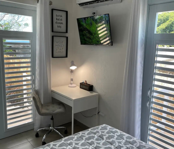 Este acogedor alojamiento de dos habitación está diseñado para ofrecer comodidad y funcionalidad. Situado en la Isla de Puerto rico -Viques, este alojamiento de dos habitación te ofrece una ubicación privilegiada, a pocos pasos de la playa. El ambiente en el alojamiento es relajado y tranquilo, perfecto para descansar después de un día explorando. El personal suele ser amable y servicial, asegurando que tu estancia sea lo más agradable posible.