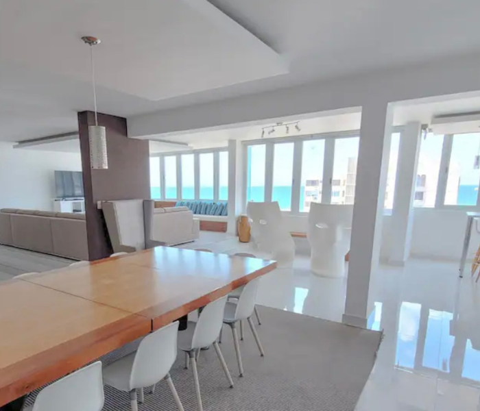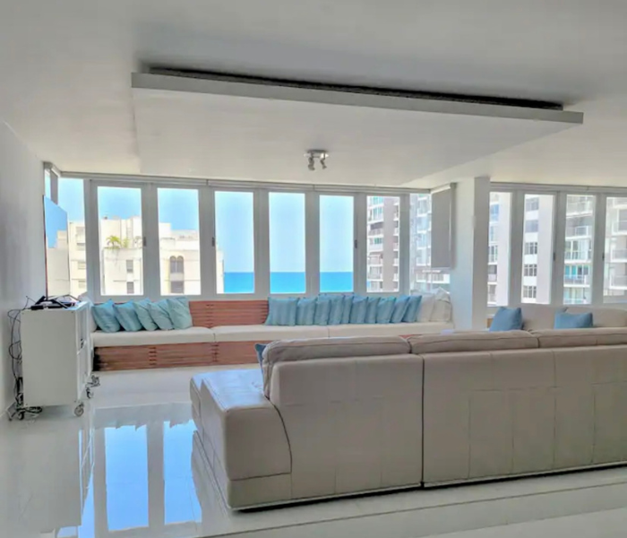 LUJOSO Y ESPACIOSO ático de 6 dormitorios y 3 1/2 baños con capacidad para 14 personas, situado en la playa. 4.000 SF2 impresionante ático con impresionantes vistas de la mejor playa de la zona metropolitana de San Juan, nuestra unidad está en el corazón de la playa de Isla Verde, donde se puede caminar a casi todo sin tener que tomar un taxi. A unos 100 metros tiene el restaurante y lounges más famosos de Puerto Rico.