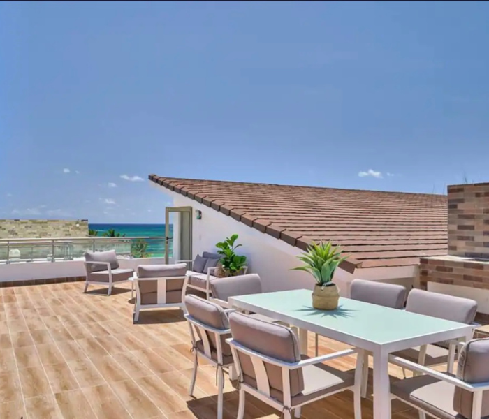 Con 3 amplios dormitorios más un cuarto de niñera con una camadoble, este lujoso ático de playa puede alojar cómodamente a 8 personas. Ubicado dentro del exclusivo complejo de Costa Atlántica, disfrutarás de acceso completo a la refrescante piscina y a la mejor playa de toda el área de Punta Cana. Después de un día de diversión bajo el sol, relájate con una película en tu televisor inteligente con servicios gratuitos de streaming o mira las estrellas en tu terraza privada en la azotea.