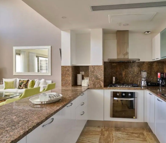 Disfrute de todas sus comidas con una magnífica vista al mar, ya sea que utilice nuestra cocina totalmente equipada de alta tecnología, su barbacoa en la terraza de la azotea o haga su pedido en uno de los muchos restaurantes deliciosos de la zona. Si tiene que trabajar a distancia, hágalo con confianza con wi-fi de alta velocidad de 100 Mbps en todo el apartamento.